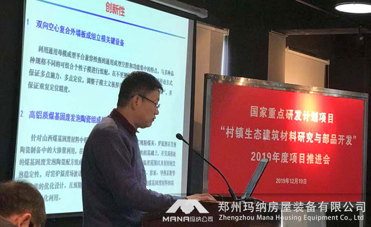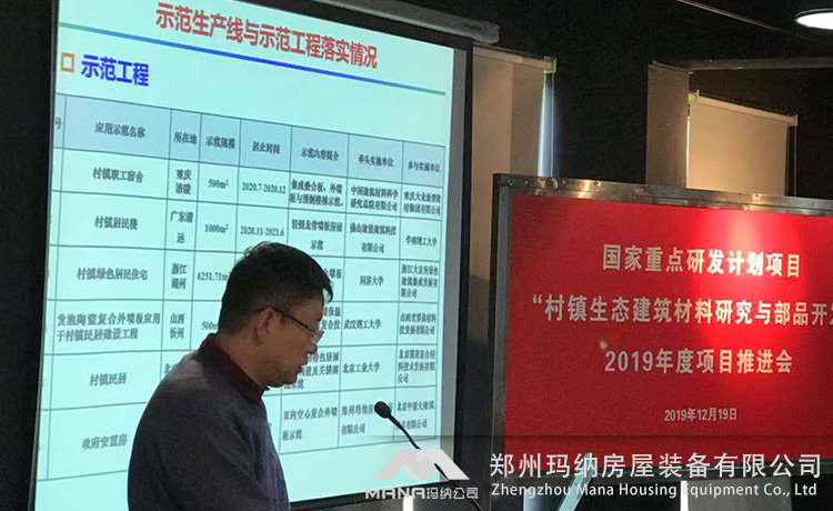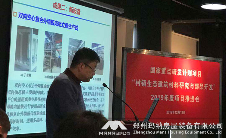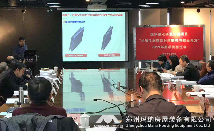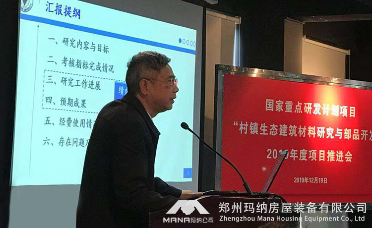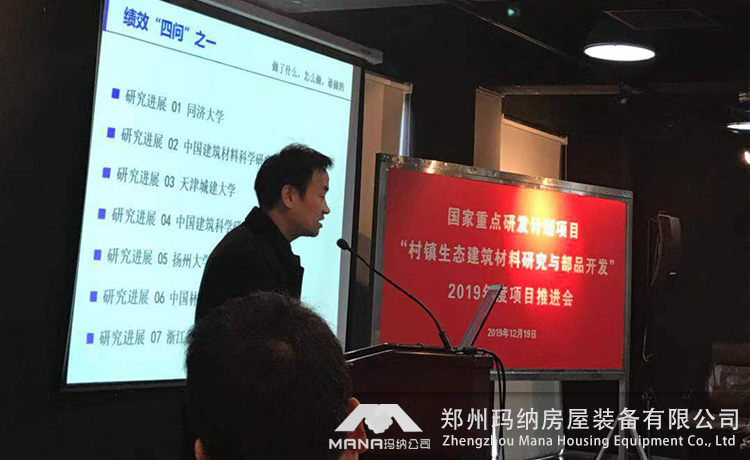 2019年12月18日-19日“十三五”國家重點研發計劃項目“村鎮生態建筑材料研究與部品開發”2019年度項目推進會在上海順利召開。此次參會人員包括專項專業機構領導、項目責任專家及項目團隊,鄭州瑪納房屋裝備有限公司作為承擔此項目的重要研發團隊,指派研發代表一行人參加。