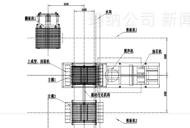 石膏空心輕質(zhì)隔墻板生產(chǎn)線主要設(shè)備包括:全自動(dòng)攪拌站、澆注系統(tǒng)、瑪納第三代成組立模、大抽拔離液壓抽芯機(jī)、自動(dòng)出板機(jī)、墻板翻轉(zhuǎn)機(jī)、擺渡系統(tǒng)、原料儲(chǔ)料系統(tǒng)。