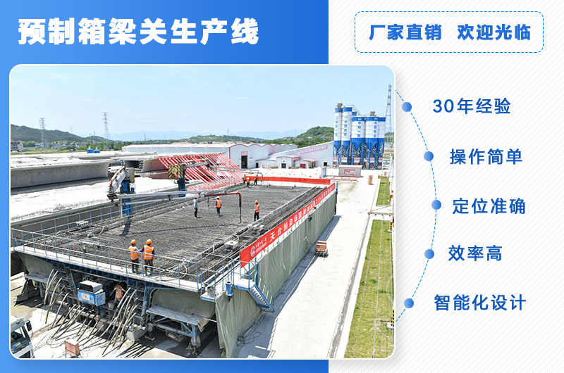 瑪納公司在30年預制模板設計制造經驗基礎上;集國內外預制模板設計制造技術;以多項創新技術作支撐,研制出了新一代鐵路客運專線快速預制箱梁生產線。