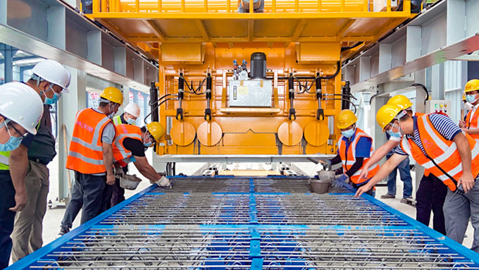 (3) 在澆注階段,自動布料系統實現精確的澆注控制,確保混凝土能均勻分布于模具中,避免氣泡和裂縫的產生。