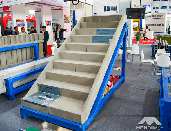 裝配式樓梯生產線主要生產多種規格工業化預制樓梯部品,如剪刀樓梯、雙跑樓梯、旋轉樓梯、具有特殊功能的樓梯。采用瑪納M型-成組立模成型技術、實現樓梯部品的高精度成型,及快速脫模。樓梯裝備生產線可實現多種規格尺寸的預制樓梯共線生產。