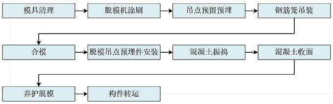 待強度達到拆模起吊要求,可采用龍門吊將預制樓梯翻轉平放在非生產范圍存放,而后采用小型運輸車將預制樓梯轉運至外部堆放場地堆放。