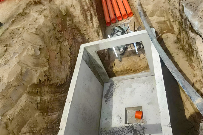 工藝流程:井預(yù)制 - 放樣 - 基坑開挖 - 墊層施工 - 運(yùn)輸 - 吊裝 - 防水處理