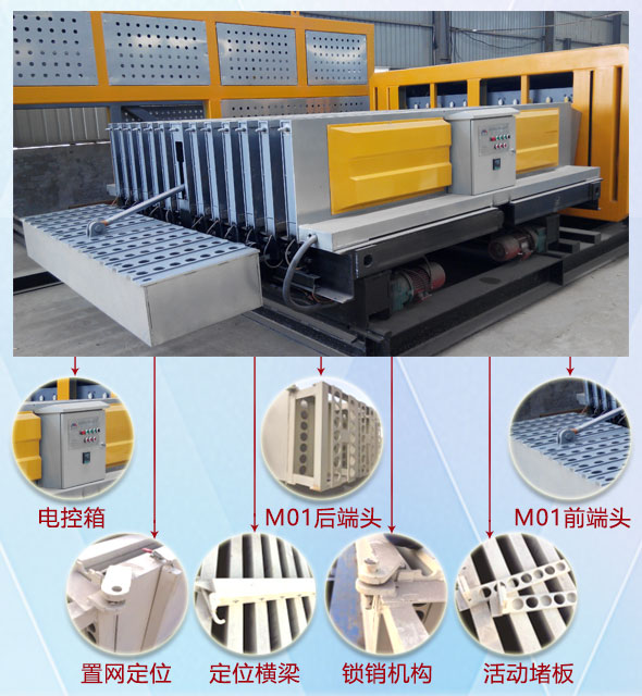M01隔墻板生產(chǎn)線系我公司第一條成組立模生產(chǎn)線,自成組立模研制成功20多年來,其投資小,見效快,操作快捷方便,性能可靠等特點(diǎn)深受客戶信賴。市場占有率已達(dá)到80%。