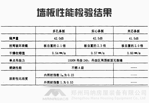 秸稈粉煤灰隔墻板性能試驗結(jié)果圖