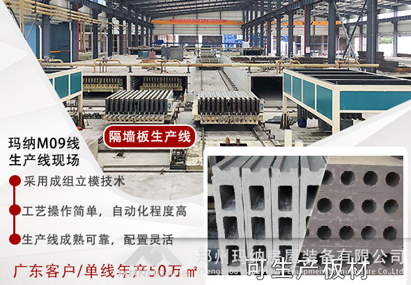 更多有關(guān)M09輕質(zhì)墻板自動(dòng)化生產(chǎn)線的詳細(xì)信息可關(guān)注鄭州瑪納公眾號(hào)獲取,亦可撥打熱線電話來(lái)咨詢,鄭州瑪納真誠(chéng)服務(wù)每一位客戶。輕質(zhì)內(nèi)隔墻板設(shè)備-M09輕質(zhì)墻板自動(dòng)化生產(chǎn)線中,新型輕質(zhì)墻板機(jī)(成組立模成型主機(jī))為重要的組成設(shè)備,找對(duì)好設(shè)備,再選擇專業(yè)制造廠家鄭州瑪納,絕對(duì)讓您的投資收益盆滿缽滿。