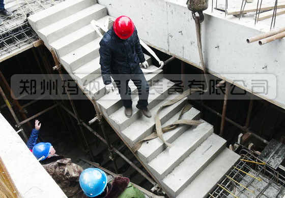 立模樓梯成型精度高,但模具結構復雜、重量大、成本高,鋼筋保護層厚度不容易控制,通常需要分層澆筑。